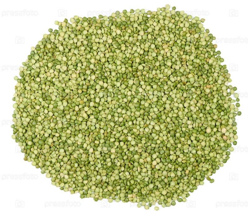 Куча сухого зеленого горошка на белом фоне