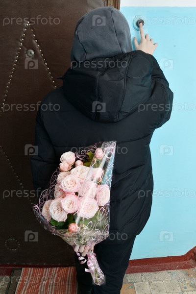 День святого Валентина мальчик держит цветы