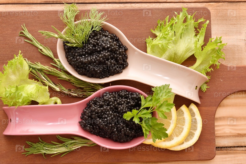 Черная икра со свежей зеленью