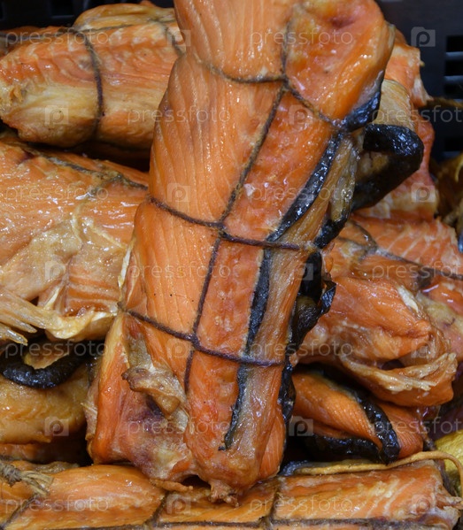 Хребты дикой тихоокеанской чавычки (лат. Oncorhynchus tshawytscha) горячего дыма