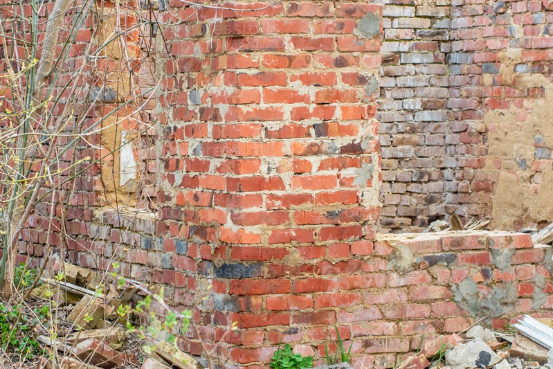 Остатки старого заброшенного здания из красного кирпича