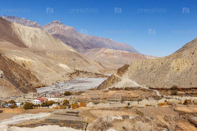 Деревня Кагбени и река Кали Гандаки. Район Мустанг, Непал