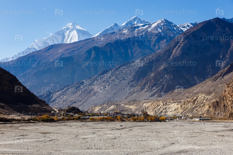 Вид на Гималаи, Дхаулагири и город Джомсом