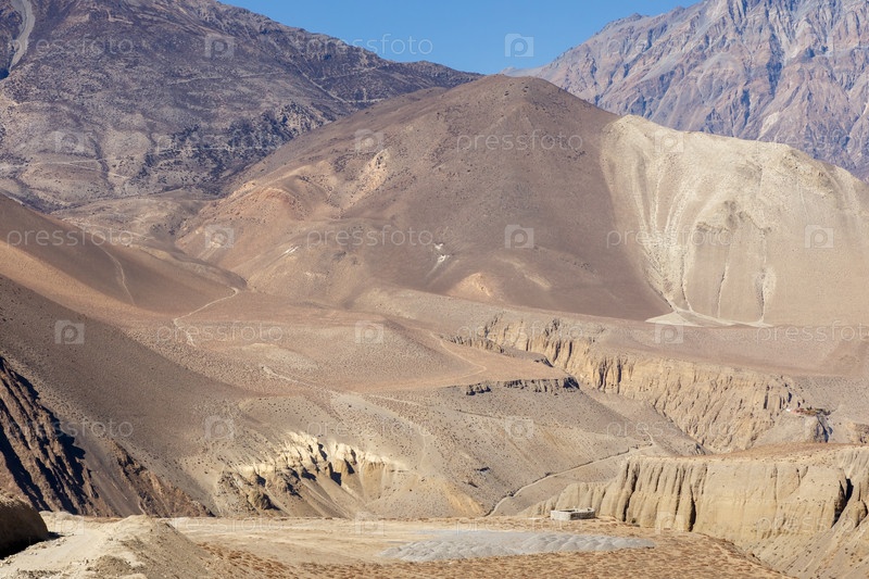 Река Джонг Кхола. Вид на горы недалеко от села Кагбени. Район Мустанг, Непал