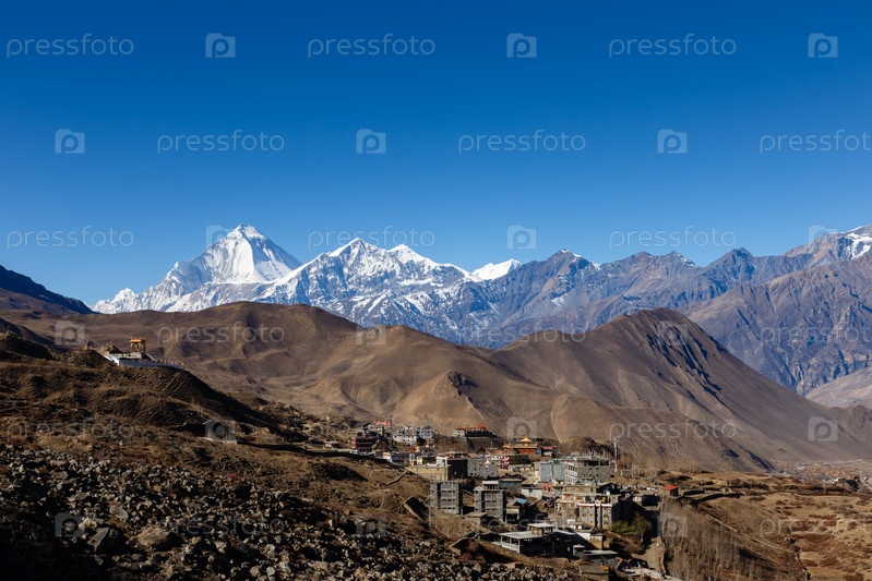 Вид на деревню Ранипаува недалеко от Муктинатха в нижнем Мустанге, Непал