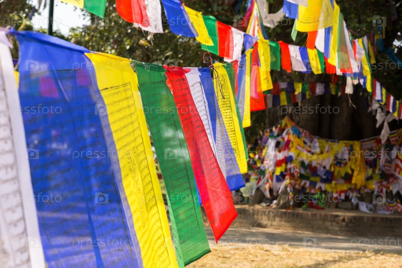 Буддийские молящиеся флаги на месте рождения Будды - Непал - Лумбини