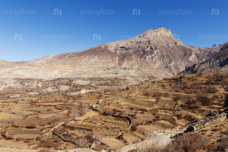 Вид на долину Джонг Кхола, Даджонг Палдип. Район Мустанг, Непал. Гималаи