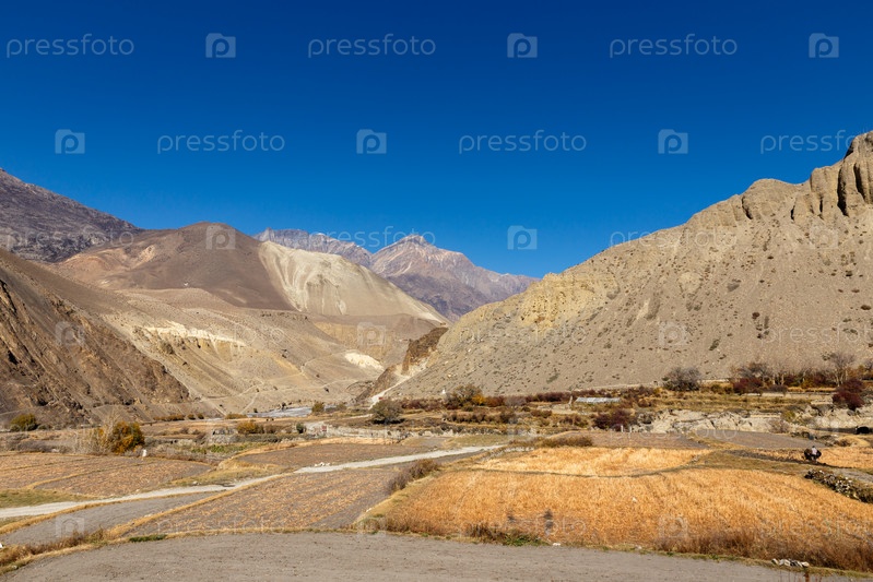 Вид на деревню Кагбени, расположенную в долине реки Кали Гандаки, Непал