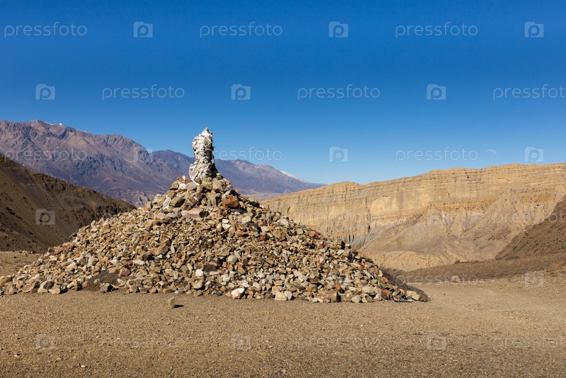 Традиционная тибетская куча камней на перевале, Гималаи, Непал