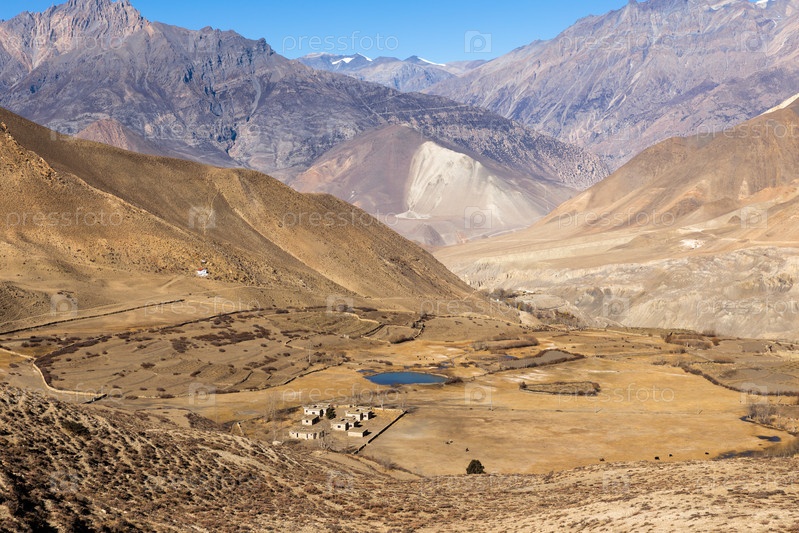 Пейзаж деревни Муктинатх в нижнем Мустанге, Непал