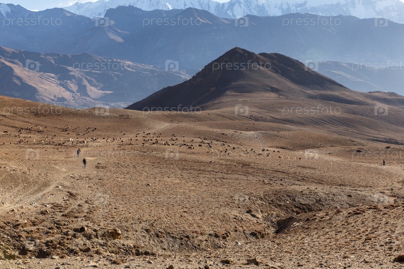 Стадо коз в горах, Гималаи, Непал