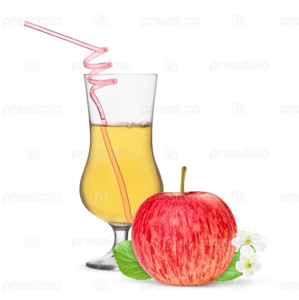 Красный яблочный сок в стакане на белом фоне
