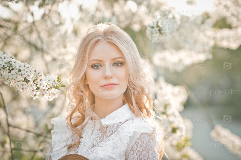 Большой портрет блондинки среди цветов 2729