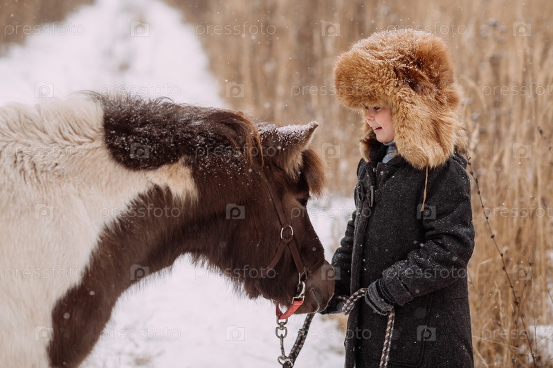 Большой портрет девушки в меховой шапке и красно-белой пони 3103
