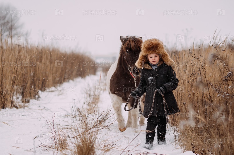 Девочки и пони среди зимних тростников 3105s
