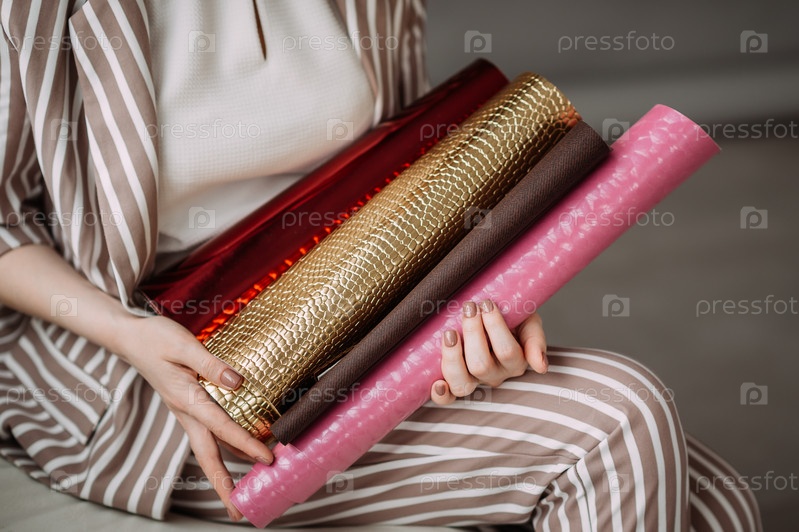 Свитки с материалами обложки в руках деловой женщины 4136