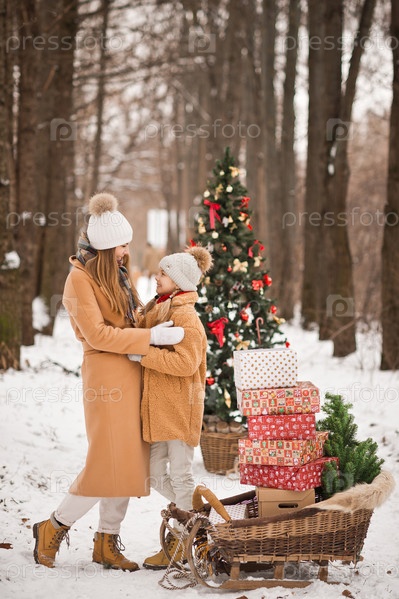 Прогулка в зимнем парке с младшей сестрой среди снега и р