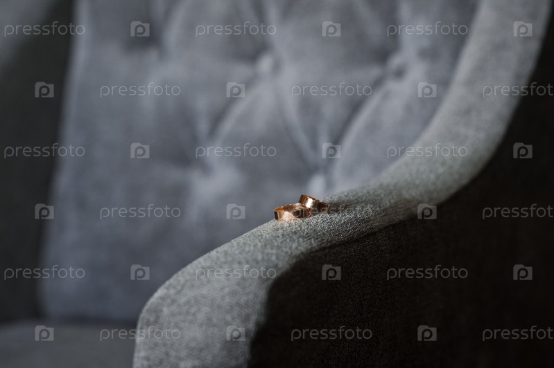 Обручальные кольца на подлокотнике велюрового кресла 3901