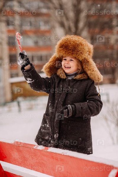 Счастливая девушка зимой на фоне домов 3131