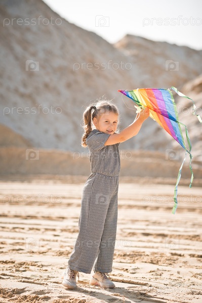 Ребенок запускает радужного змея 3346