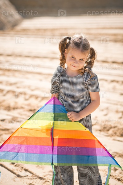 Ребенок запускает радужного змея 3349