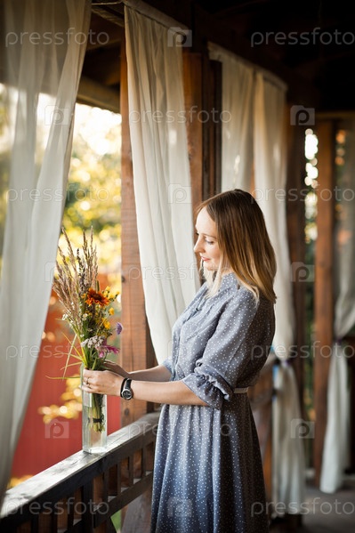 Портрет молодой женщины на краю большой террасы возле дома 3460