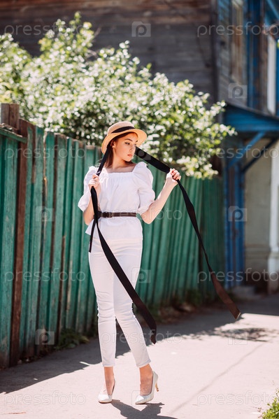 Радостный портрет молодой девушки с букетом полевых цветов и шляпой 3