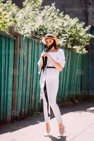 Радостный портрет молодой девушки с букетом полевых цветов и шляпой 3