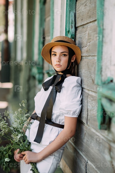 Большой портрет девушки в соломенной шляпе и с черными лентами 3580