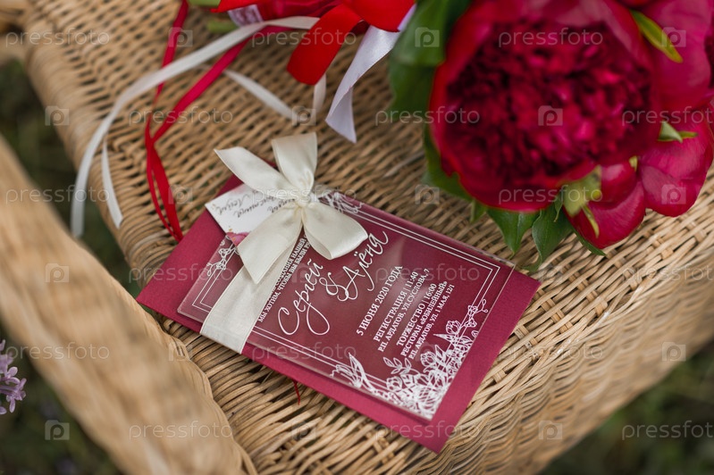 Букет рубиновых цветов на плетеном кресле 2800