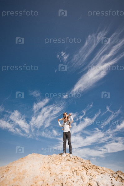 Папа и дочка на фоне облаков 3316