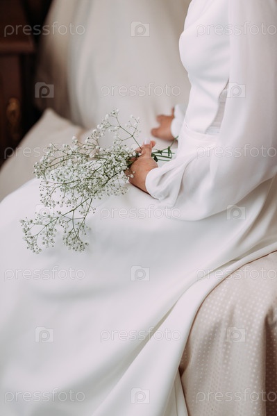 Девушка держит в руках букет гипсофилов 3774