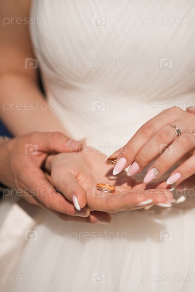Солнечное фото молодоженов, держащихся за руки 3939