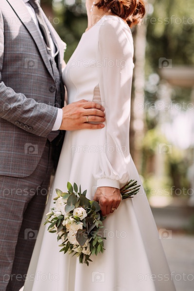 Красивое нежное фото молодоженов, обнимающихся