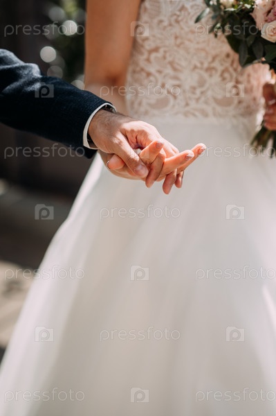 Обнимая за руки молодоженов в солнечный летний день