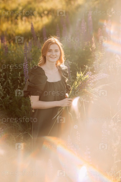 Красивый портрет с бликами солнца девушки на лугу 3282