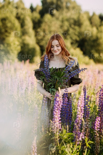 Красивая рыжеволосая девушка в зарослях люпина 3283