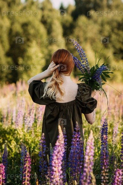Красивая рыжеволосая девушка в зарослях люпина 3284