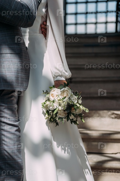 Красивое нежное фото молодоженов, обнимающихся 3777
