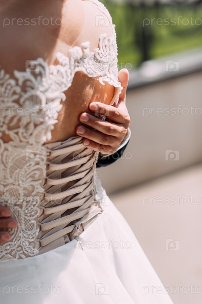 Нежное фото трогательных прикосновений молодоженов 3803