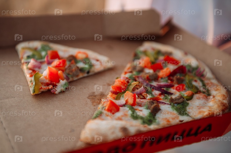 Кусочки пиццы в коробке