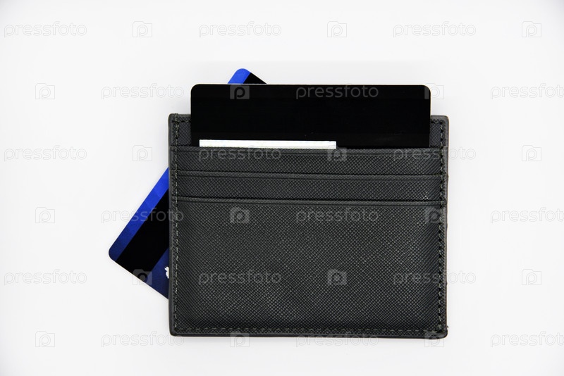 Пластиковый картхолдер с банковскими картами на белом фоне. Кошелек для пластиковых банковских карт. Банковские карты