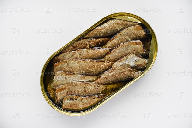 Рыбные консервы в банке. Шпроты в жестяной банке. Рыба в масле