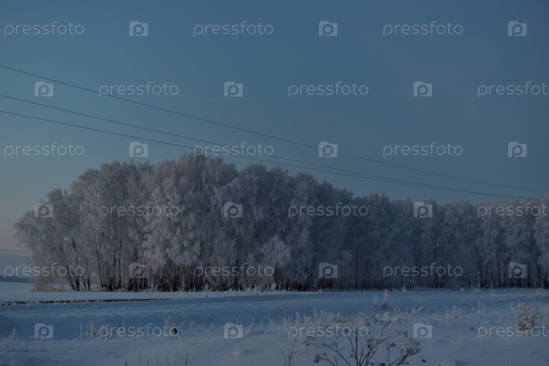 Зимний вечерний лес и заснеженные деревья. Красивый лес в снегу поздно вечером. Зимнее поле в деревне