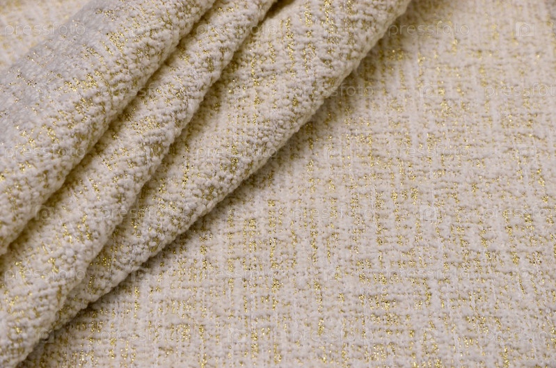 Шерстяная ткань с акрилом и люрексом цвета слоновой кости с золотом