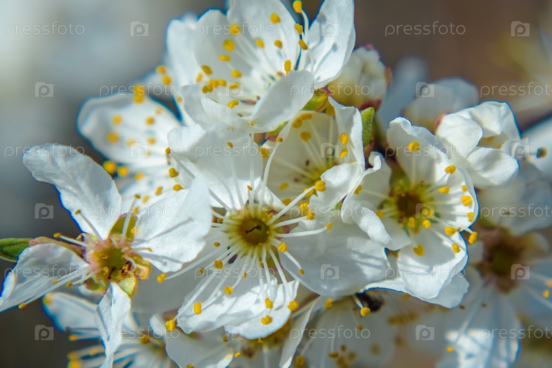 Яблоневый цвет с белыми цветами. Выборочный фокус