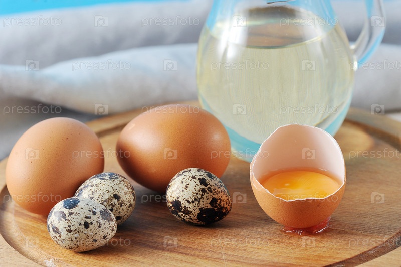 Куриные яйца и перепелиные яйца