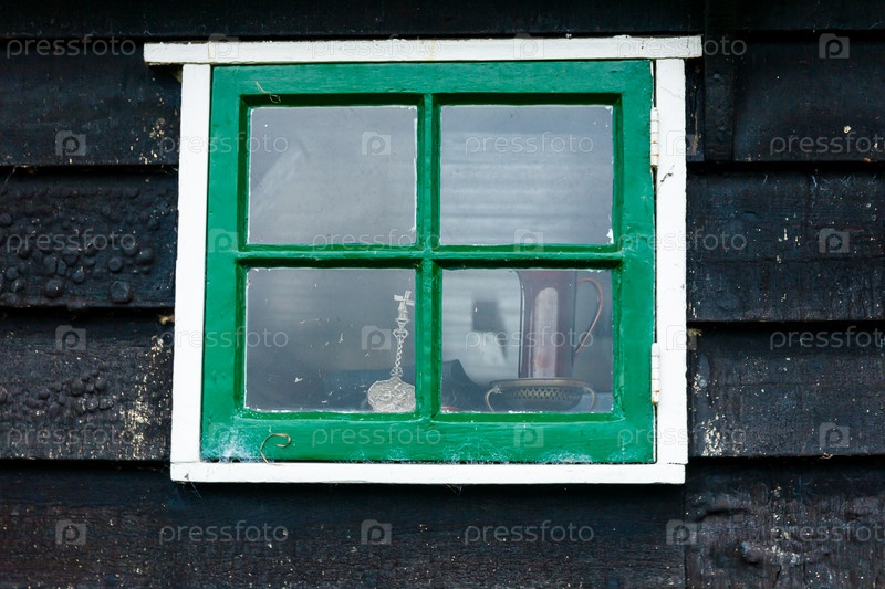 Старомодное традиционное деревянное окно и черная деревянная стена в Амстердаме, Нидерланды