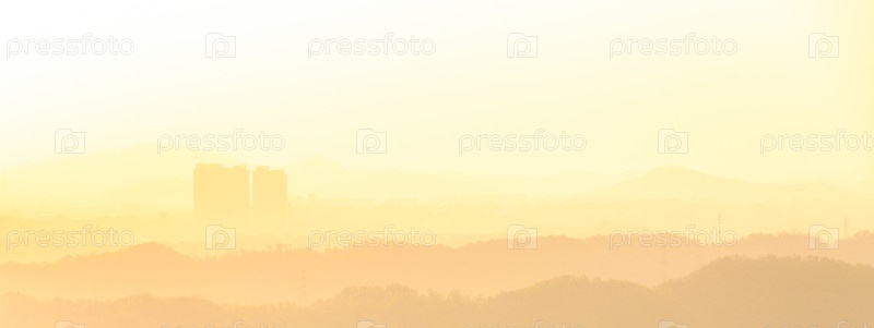 Небоскребы на фоне холмов на рассвете