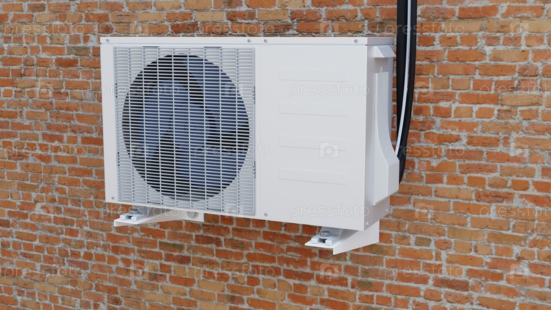 Внешний блок кондиционера на кирпичной стене 3d